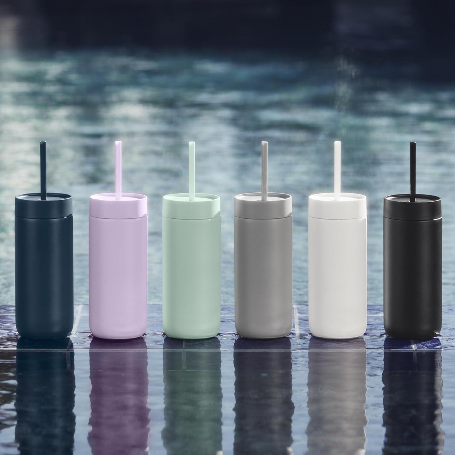 Fellow 20 oz Carter Cold Travel Mug for Water, Iced Tea, Coffee, Smoothies, Iced Coffee & more – Stainless Steel Vacuum-Insulated Iced Coffee tumbler with Spill Resistant lid and straw – Matte White